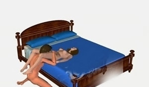 如图所示,女性躺着,男性将自己的头埋在女性的两腿之间。女性将自己的双腿放在男性的肩膀上。在这种姿势中,男性还可以进一步的巧用双手,可以抚摸女性身体,也可以不断刺激女性阴蒂。相信女性对于如此双重刺激,一定是享受不尽。